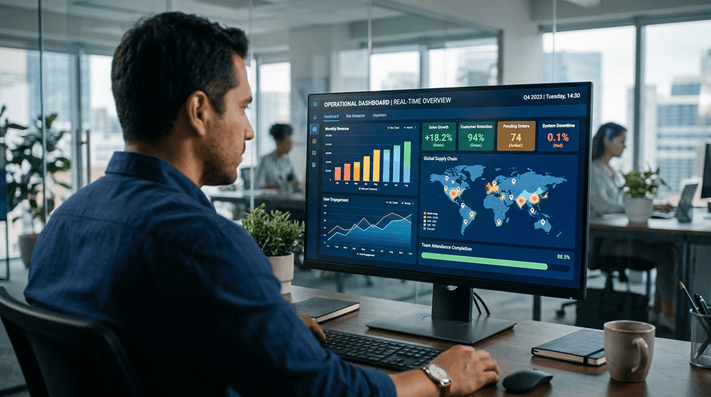 Sin datos en tiempo real, no podían responder preguntas básicas: ¿cuántos puntos reportaron ya? ¿Dónde faltan coberturas? ¿Cuál es la tasa de ausentismo de hoy comparada con la semana pasada? Cada mañana era un vuelo a ciegas.