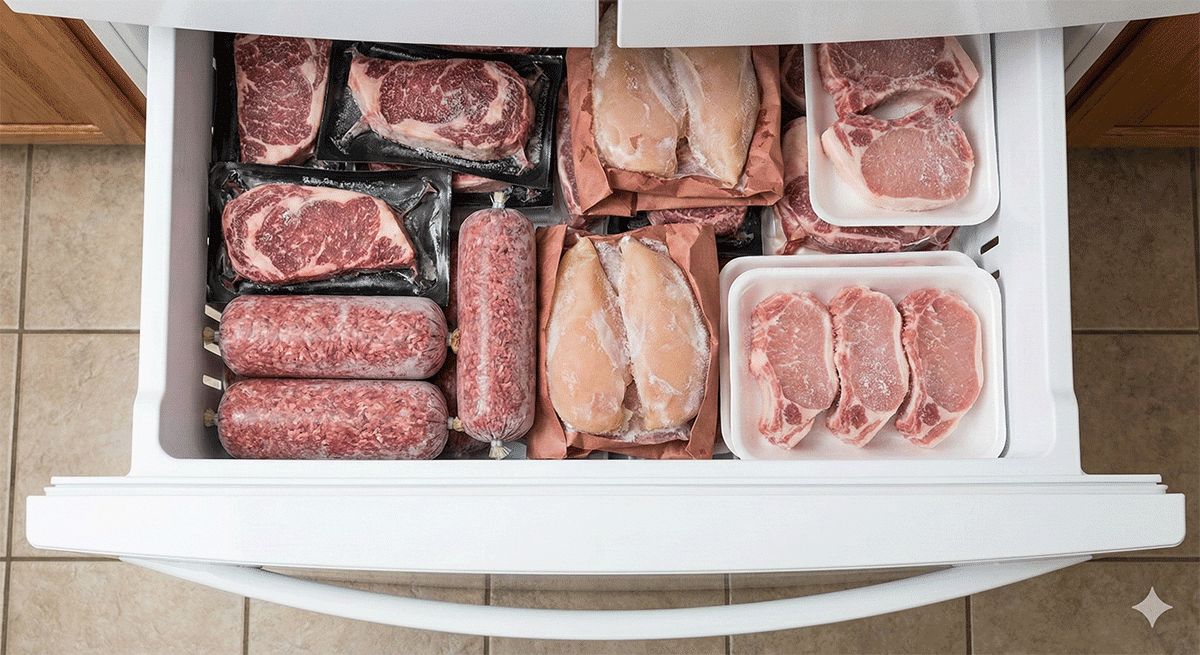 Bolsa, lámina o film  azul para encajado de carne a granel o congelado.
