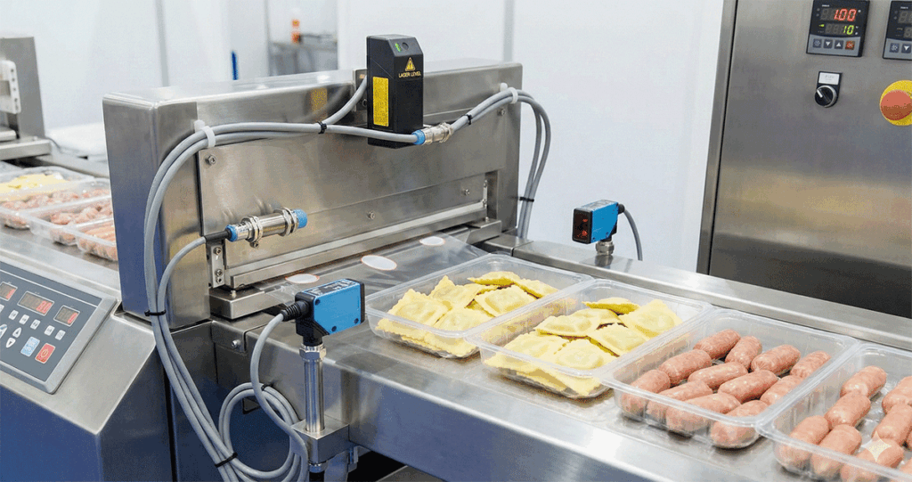 - Sistemas de envasado automático que cogen las porciones (en sólido) o el contenido (en líquidos), las lonchean, las colocan en sus envases, y aplican el vacío o la atmósfera protectora.