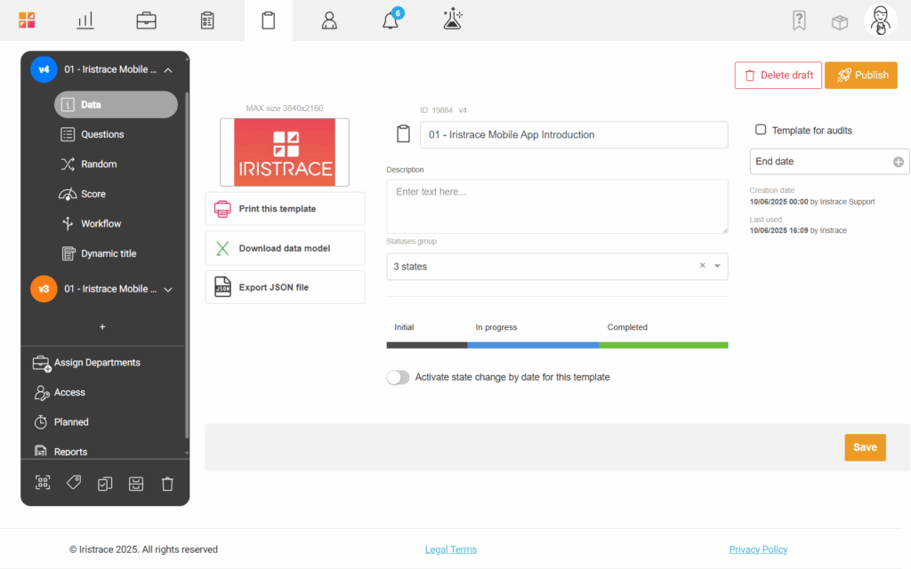 Itereer op gecreëerde templates zonder informatie van voorgaande versies te verliezen. Elke iteratie heeft zijn eigen versie, waardoor wijzigingen duidelijk zichtbaar en traceerbaar zijn.